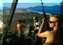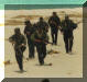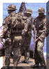 在沙漠进行引导空中精确打击训练的海豹队员,右边队员手上的是激光指示器