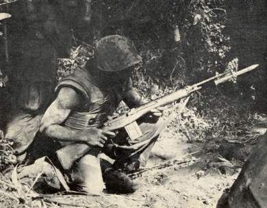 ![]() 越战中,在M14上用不干胶布反绑后备弹匣的美国海军陆战队士兵 |