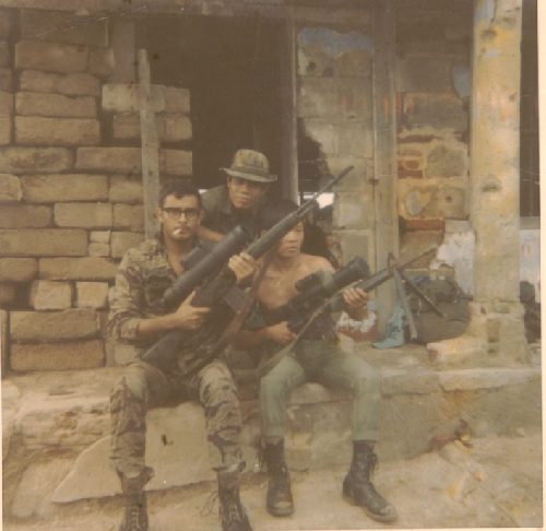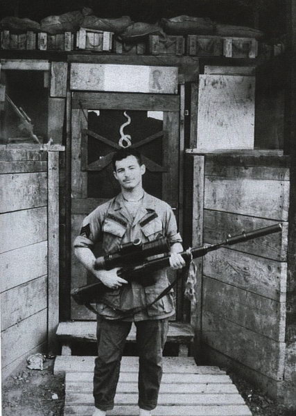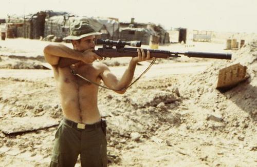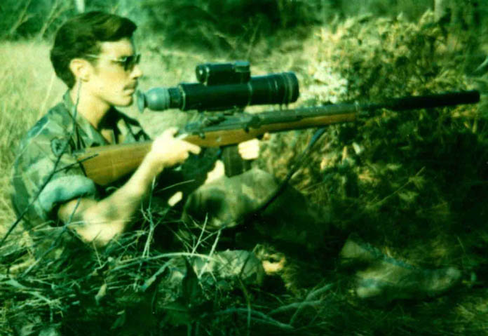 1969年,美国陆军第9步兵师的狙击手Adelbert F. Waldron军士正使用XM21瞄准。