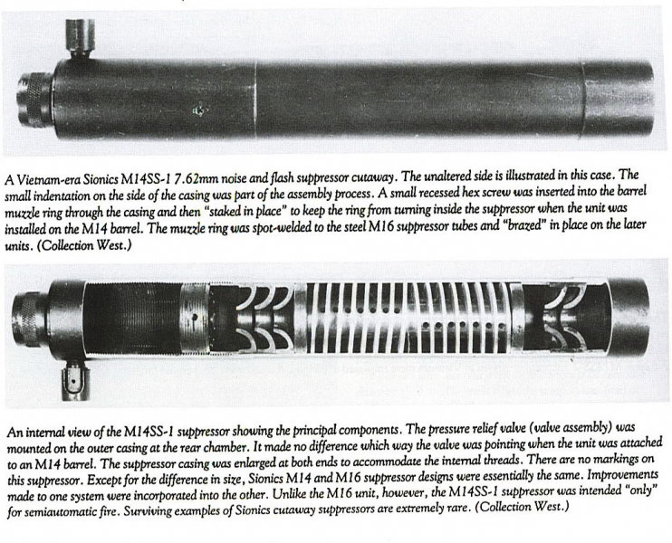 M21的消焰器可外接Sionics消声器,该消声器不会影响弹丸的初速,但能把泄出气体的速度降低至音速以下,使射手位置不易暴露。在越战中,美军狙击手就经常采用一种被称为“Silent Death”(寂静射杀)的战术,他们在夜间行动,事先埋伏在水稻田里,使用Sionics消声器和夜视瞄准具射击200~300米距离上的目标,并发射一种初速小于330m/s的亚音速步枪弹。关于Silent Death有这么一个战例:一个班的北越士兵在深夜沿着小树林潜行,突然领头的倒了下去,他们都有作战经验,立即卧倒并滚到沟里去。大约15分钟后,另一个北越士兵起来去捡死者的枪,结果又倒了下去。于是传出了美国人使用了激光武器和制导枪弹。