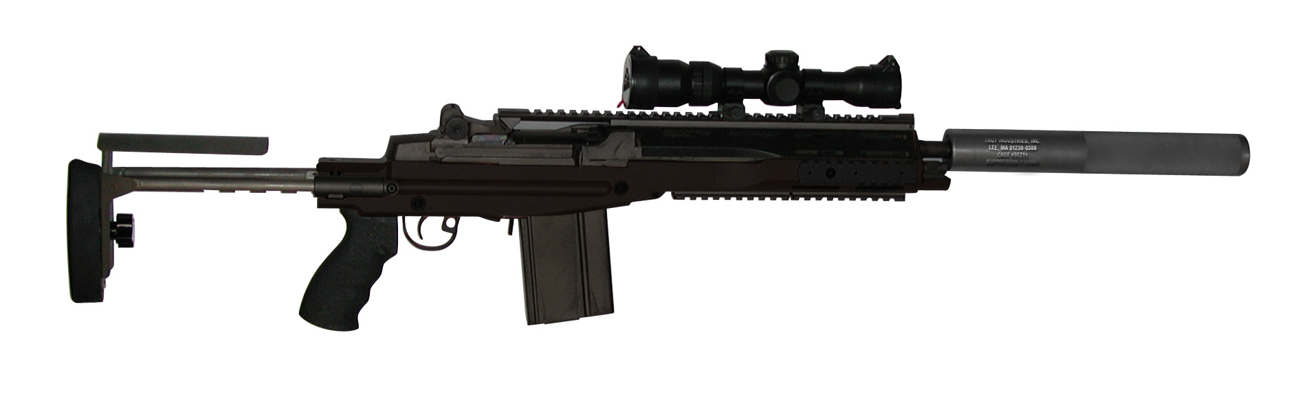 在2003年,特洛伊工业推出了SOPMOD Calimando。这是用“94禁令后”的M14型机匣改装,用16英寸枪管和没有手枪形握把的传统式枪托,全长为35英寸(889mm)。并命名为“特种作战特别改进型M14突击队员卡宾枪”(SOPMOD M14 Commando Carbine)。