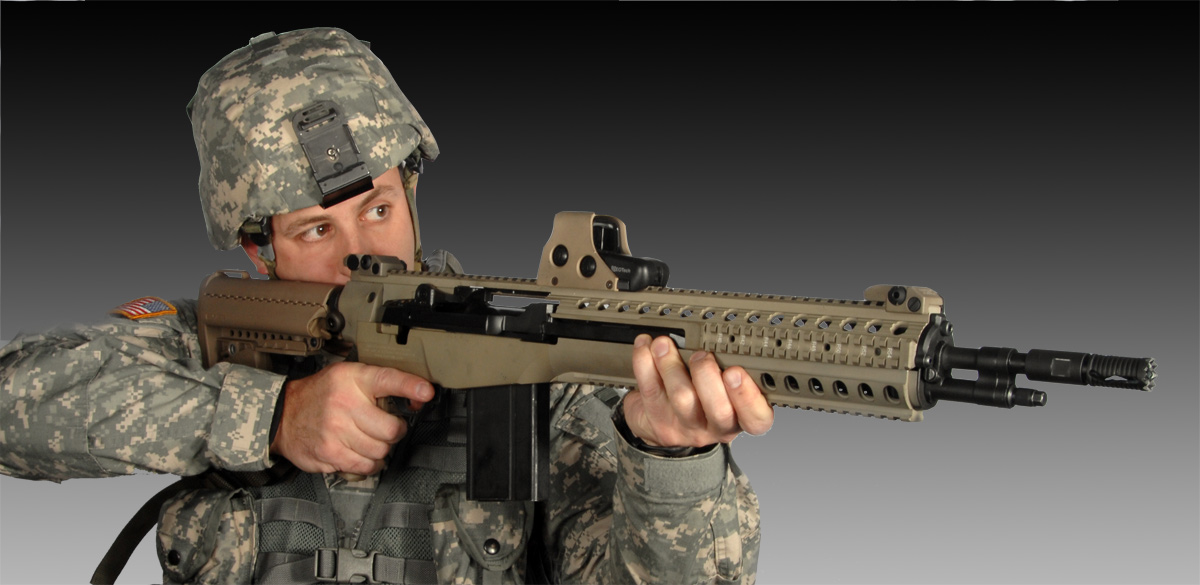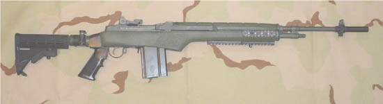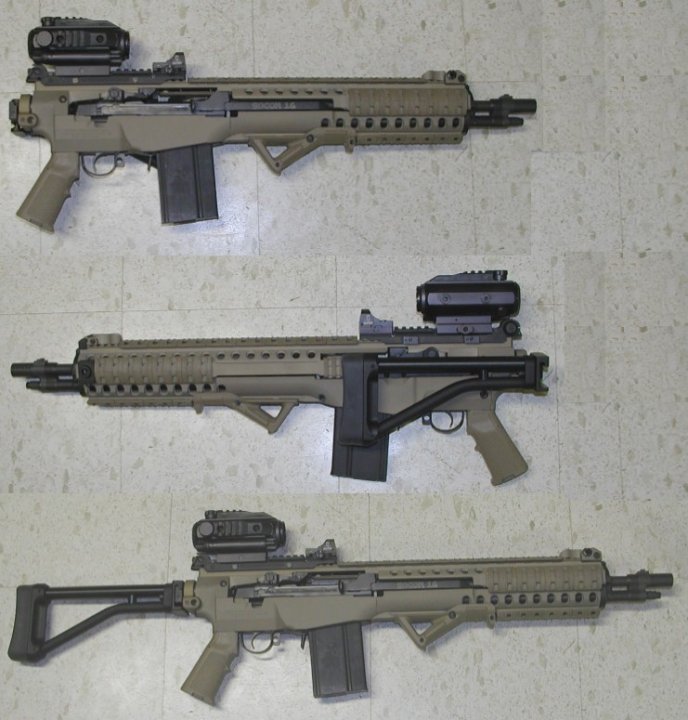 固定枪托被杆形伸缩式轻合金枪托代替,长度有多个位置可调,使步枪。采用16英寸枪管时空枪重8.25磅(3.75kg),全长从30英寸(762mm)到35英寸(889mm)。导气系统也重新设计以减少枪口跳动,提高恶劣环境下的可靠性,导气活塞通过连杆与枪机连接。护木上有M1913导轨,以便于安装多种标准接口的战术附件。采用一种类似M16A2式的新消焰器代替原来的USGI消焰器,并有螺纹方便外接消声器。