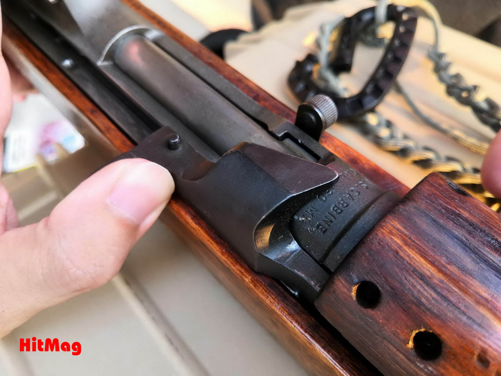 HitMag的朋友@猪兜2019年在泰国靶场拍摄的M2卡宾细节,这把枪有些部件已经是翻新过