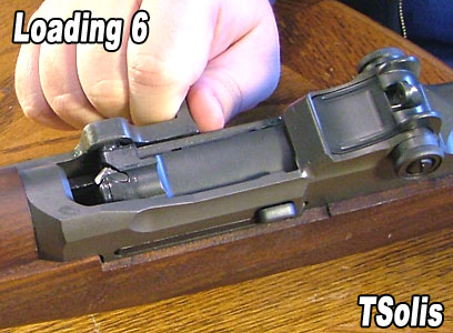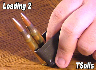 ![]() 把装满枪弹的漏夹压进弹仓内 |