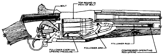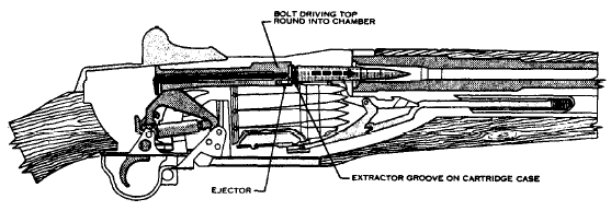 | 枪机复进后,把弹仓中第一发弹推进弹膛