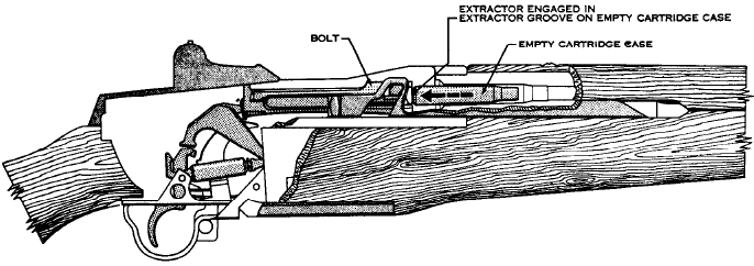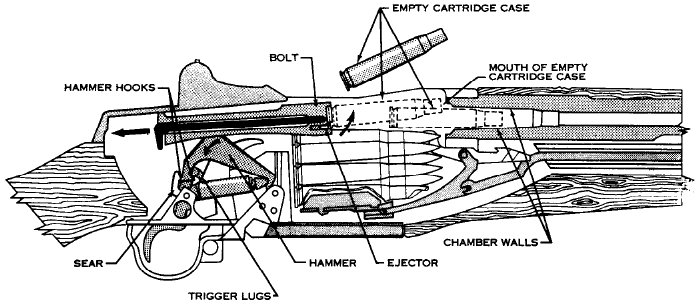 | 枪机后坐时,抽出空弹壳