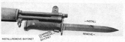 M1步枪配用一些不同形式的刺刀,包括刃长16英寸(406mm)的M1905式,刃长10英寸(254mm)的M1905E1式,刃长10英寸(254mm)的M1式,和刃长6英寸(152mm)的M5式。枪管上可套上M7式枪榴弹发射套管,并在扳机前方安装M15式枪榴弹瞄准具。