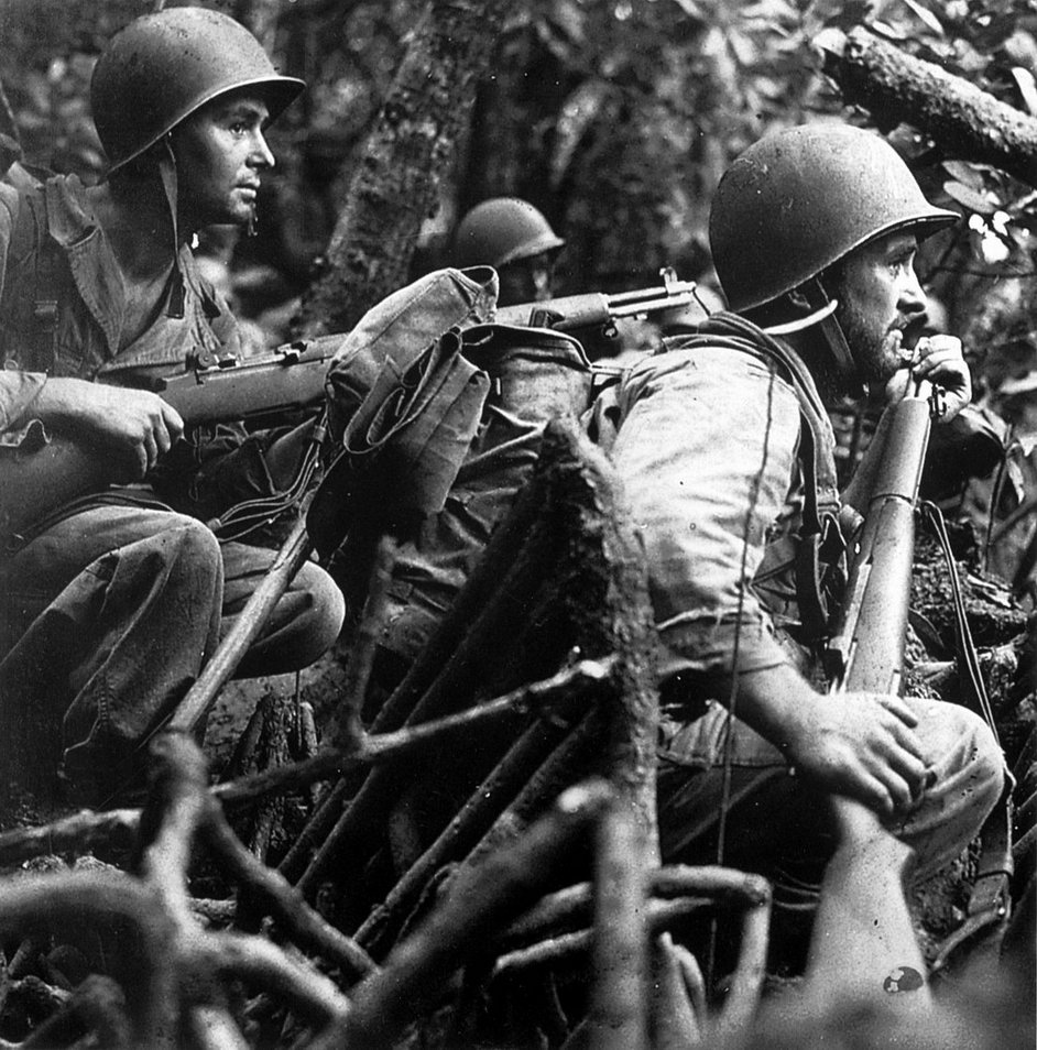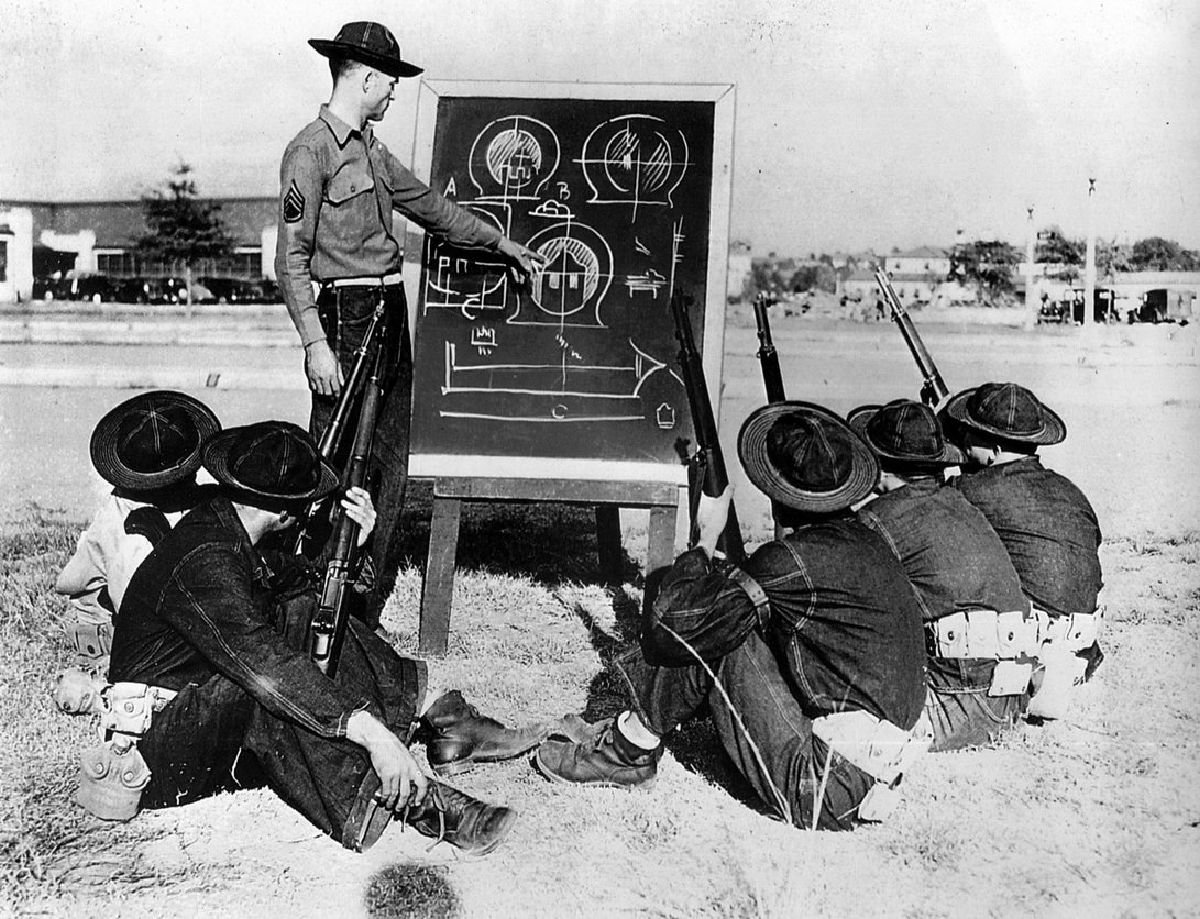 ![]() 约翰·伽兰德在1944年的照片,照片中他正在陆军高级军官讲解M1步枪的特点,中间的是查尔斯·韦森少将(Major General Charles M. Wesson),右边的是吉尔伯特·斯图尔特准将(Brigadier General Gilbert H. Stewart) |