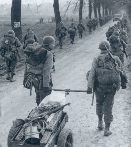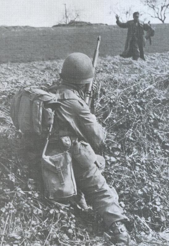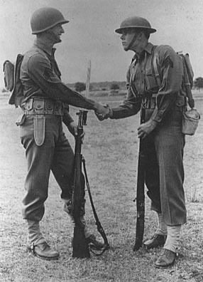 有意思的照片。一名二战装束手持M1步枪的士兵与另一名手持M1903穿一战装束的士兵在握手