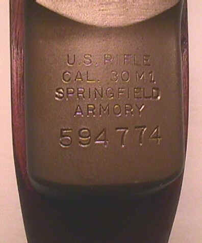 M1伽兰德步枪的铭文印在机匣尾部,此图中的枪系由春田兵工厂生产
