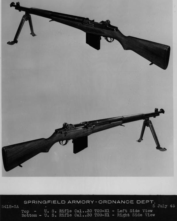 T20,约翰·伽兰德对增加M1步枪火力的第一次尝试,在M1步枪上增加了快慢机,并改用BAR的20发弹匣供弹。后来的改进型有T20E1、T20E2和T20E2HB。