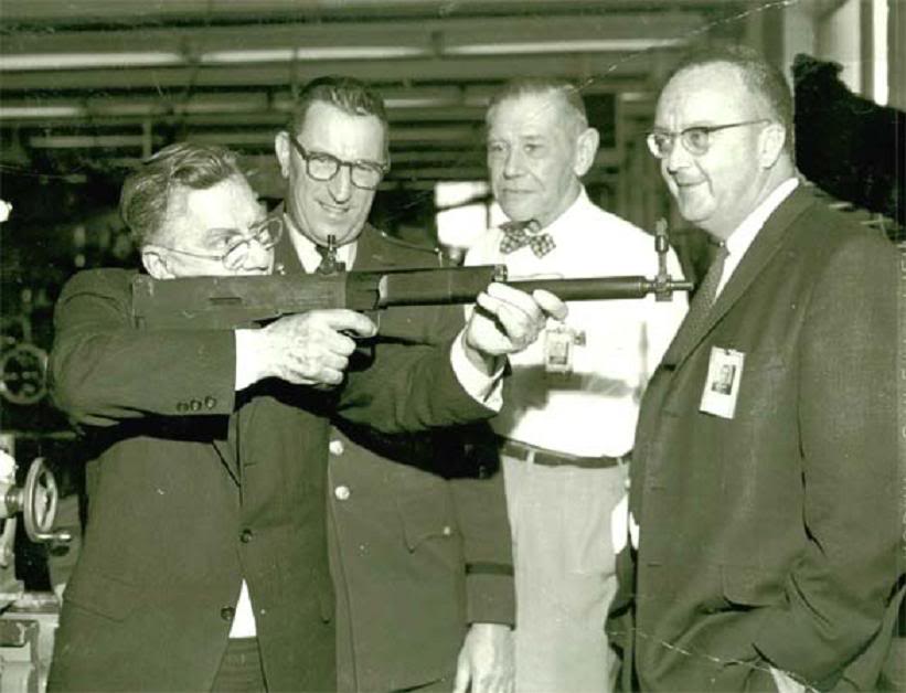 M1E2,最早的狙击型试验枪,安装棱镜正像式光学瞄准镜。