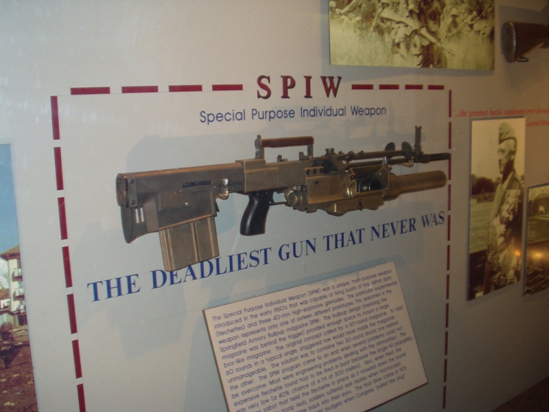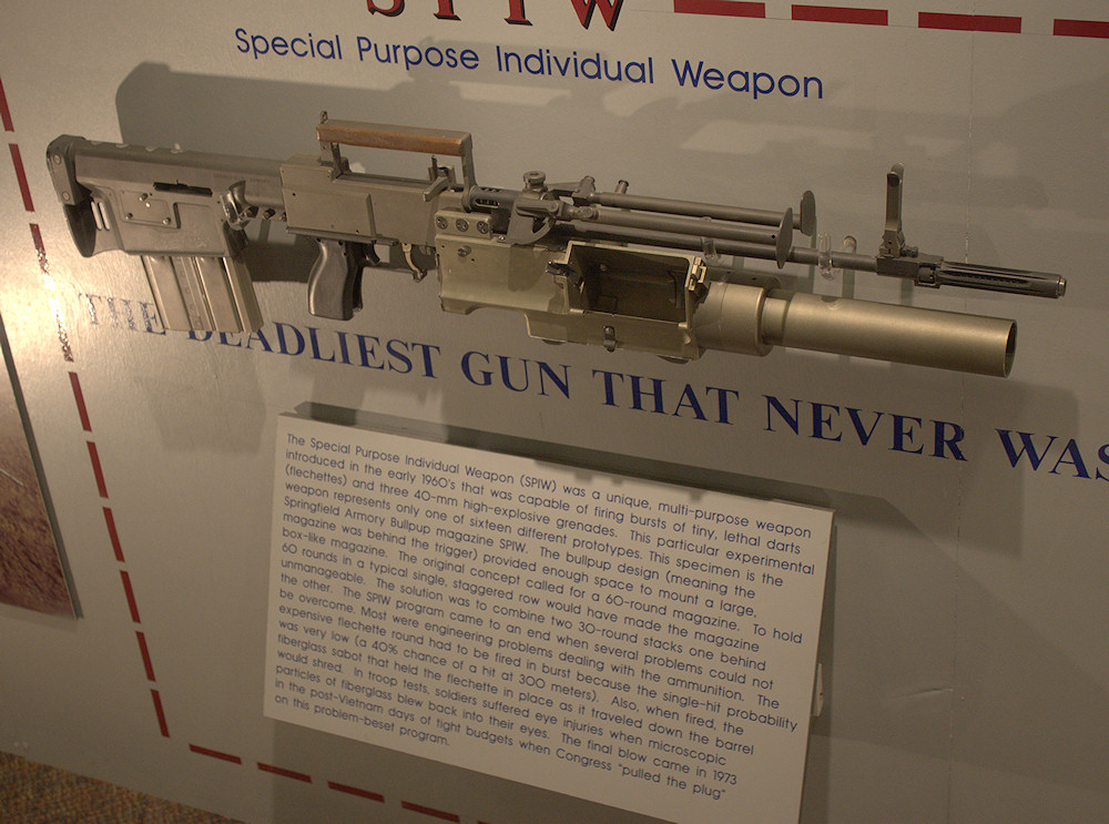 存放在博物馆里的春田SPIW第一代原型枪,在SPIW上面的是T31无托试验枪