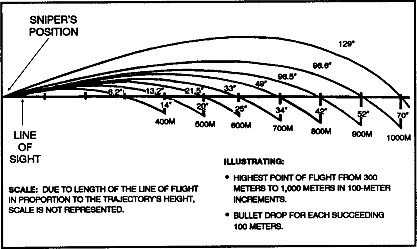 M24发射M118弹在不同距离的射角