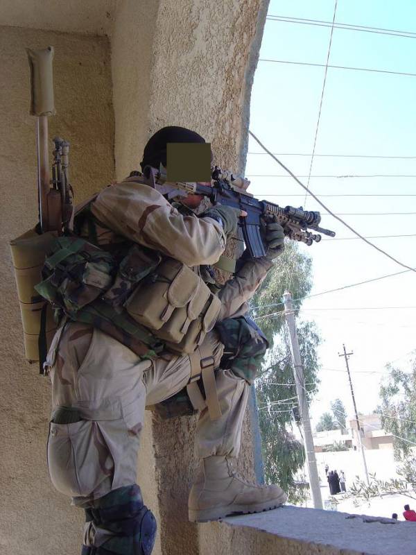 在伊拉克使用M24 SWS的美国陆军特种部队的狙击手,辅助武器是M4A1