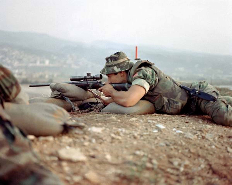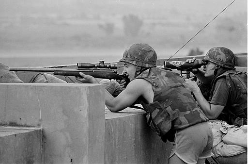 在越南战争中的陆战队的M40与陆军的XM21