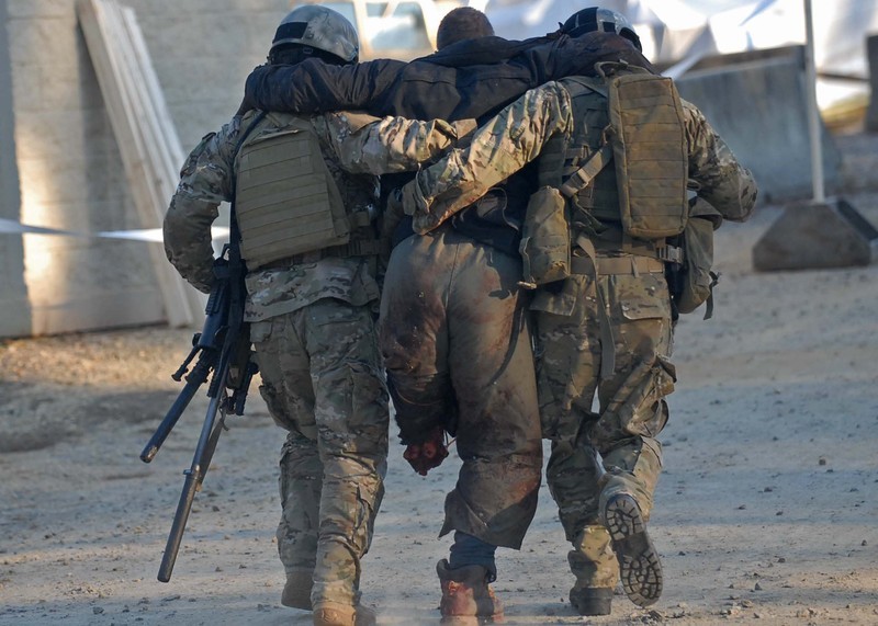 2010年美军一次狙击比赛上出现的Mk13 MOD5,断腿那个是扮演伤员情景的“群众演员”