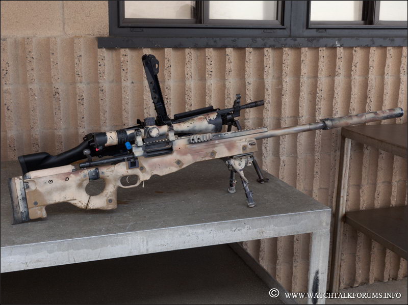 一把安装MARS导轨的狙击步枪,据说这把就是中期型的Mk13,但其实也可能是麦克米兰TAC-338,这个角度看不清楚枪机细节