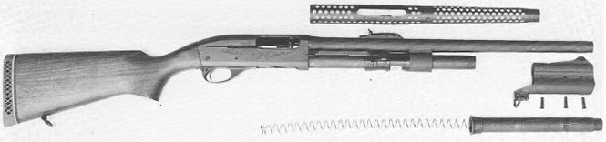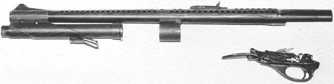 把雷明顿1100转换成7188 Mark 1只需要这两个部件:含刺刀座和弹仓延长管的枪管,和含快慢机的扳机组