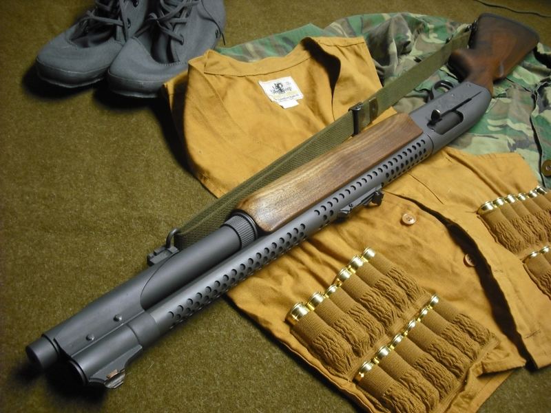 海豹在越南使用过的各种武器,由下至上第2把就是雷明顿7188,最下面一把是高标10B半自动霰弹枪,再上面一把是阿玛莱特AR-17半自动霰弹枪