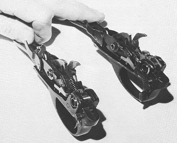 扳机组比较,左边是雷明顿1100,右边是雷明顿7188