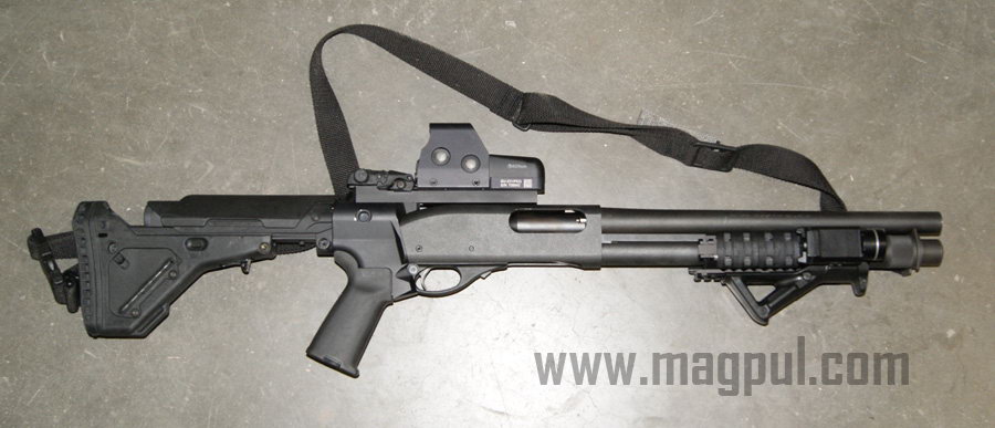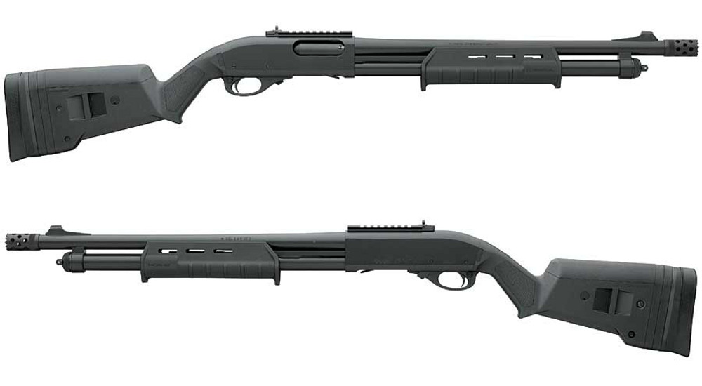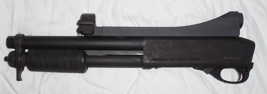 经过同样改装的警用马格南(Police Magnum),所以如果不看机匣上的铭文,不容易分辨出雷胆顿870的各种型号
