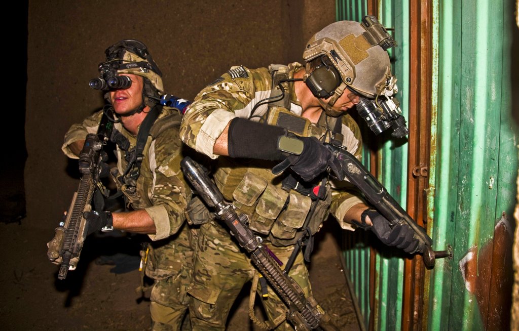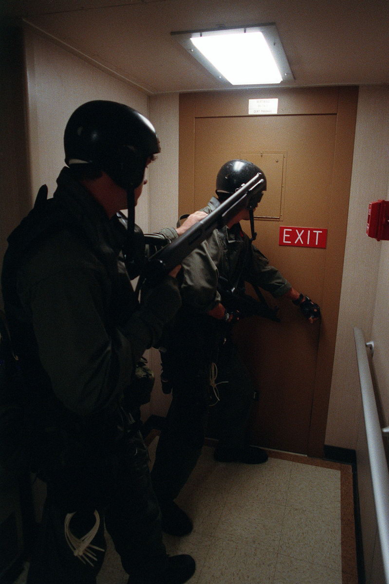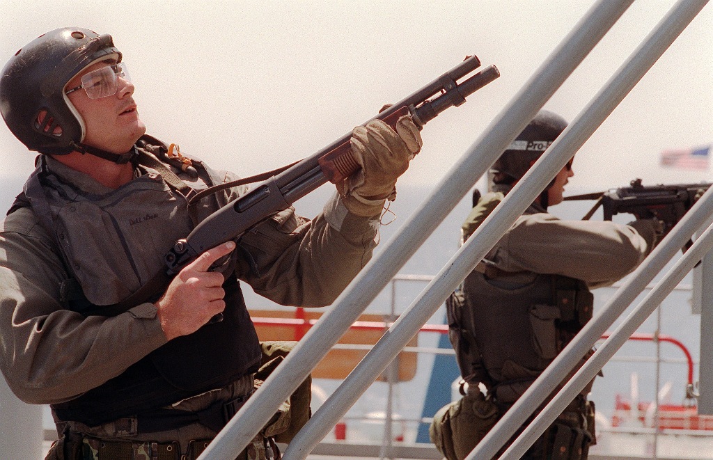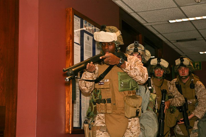 海豹和陆战队远征军直属侦察连(FORCE RECON)的VBSS联合演练中,使用安装了SAGE伸缩式枪托的雷明顿870 Mark 1