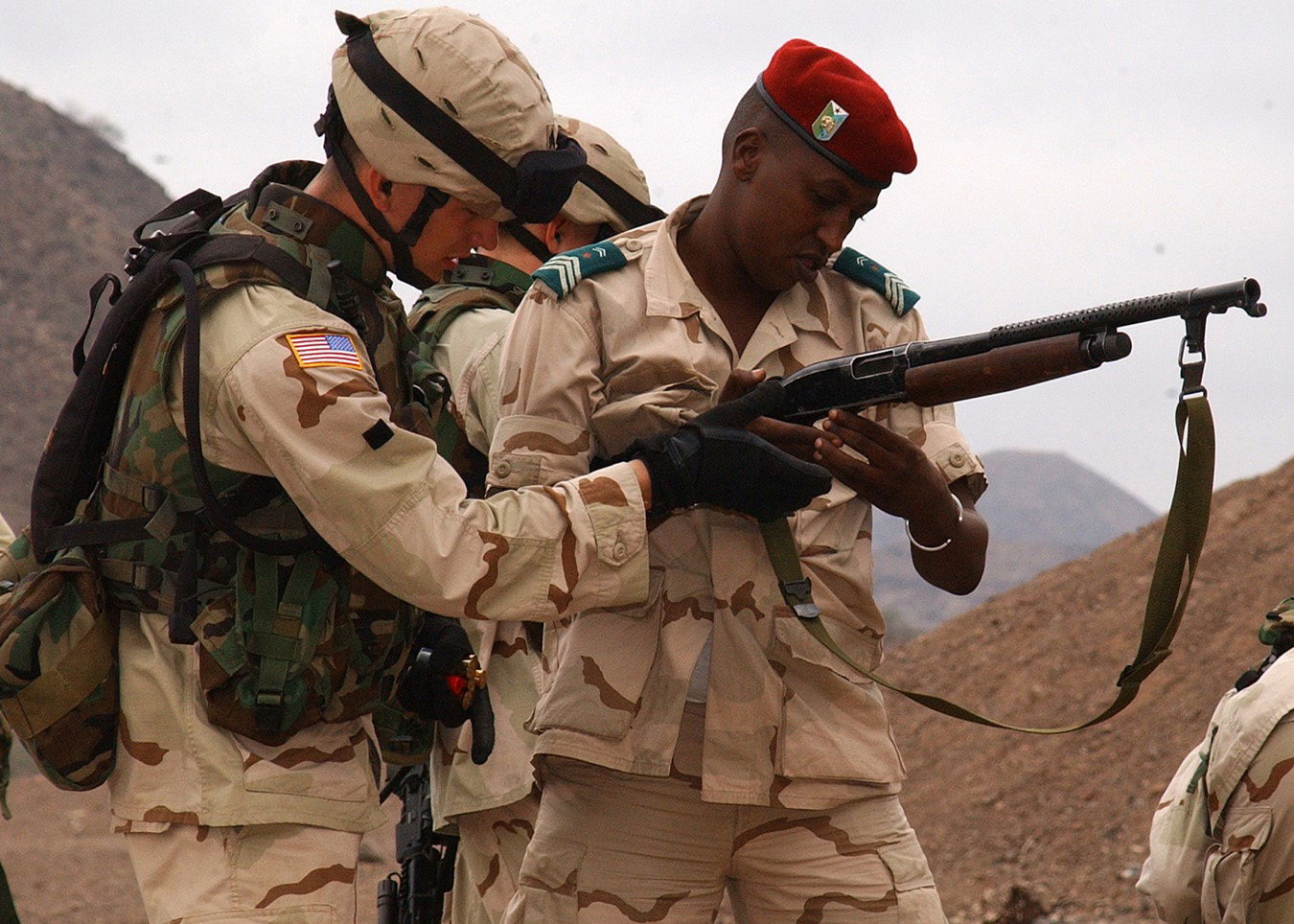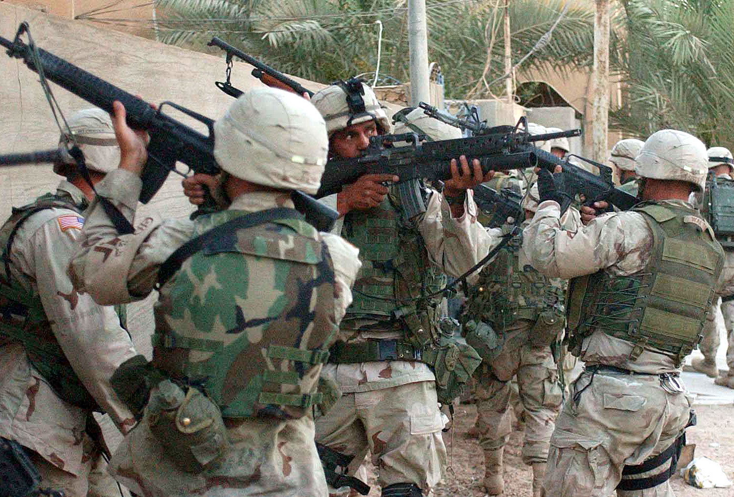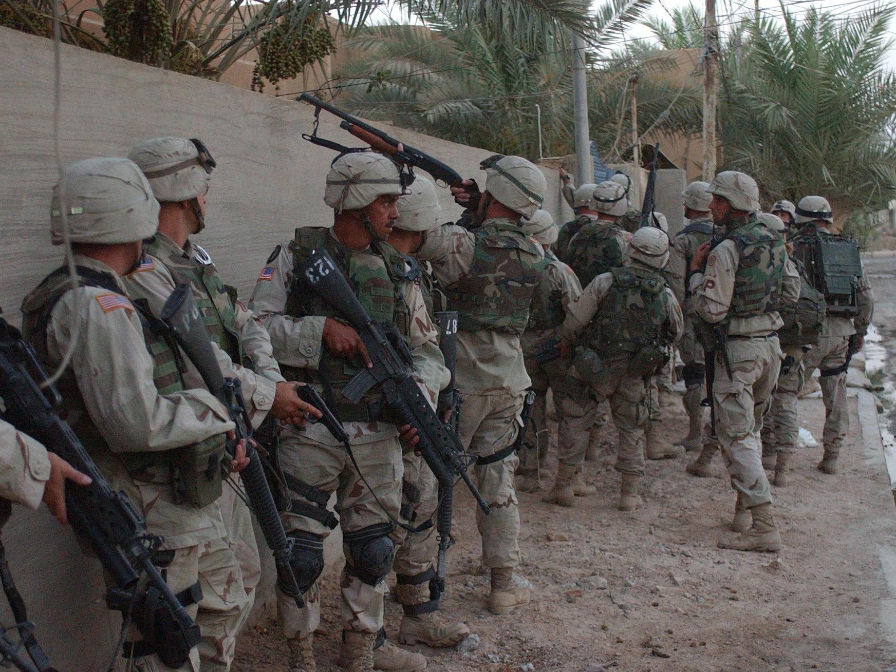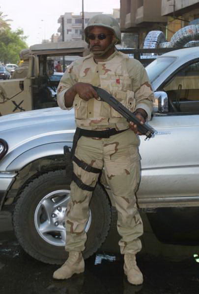 2003年在伊拉克的美国陆军,图中的雷明顿870安装了堑壕型的隔热罩/刺刀座
