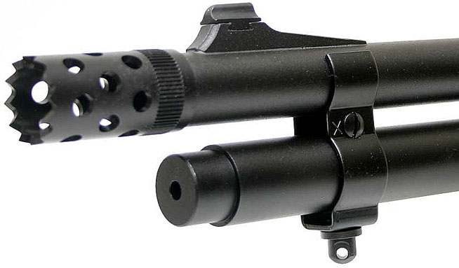 美军装备的堑壕型雷明顿870,和其他堑壕枪一样枪管上有隔热罩及带刺刀座
