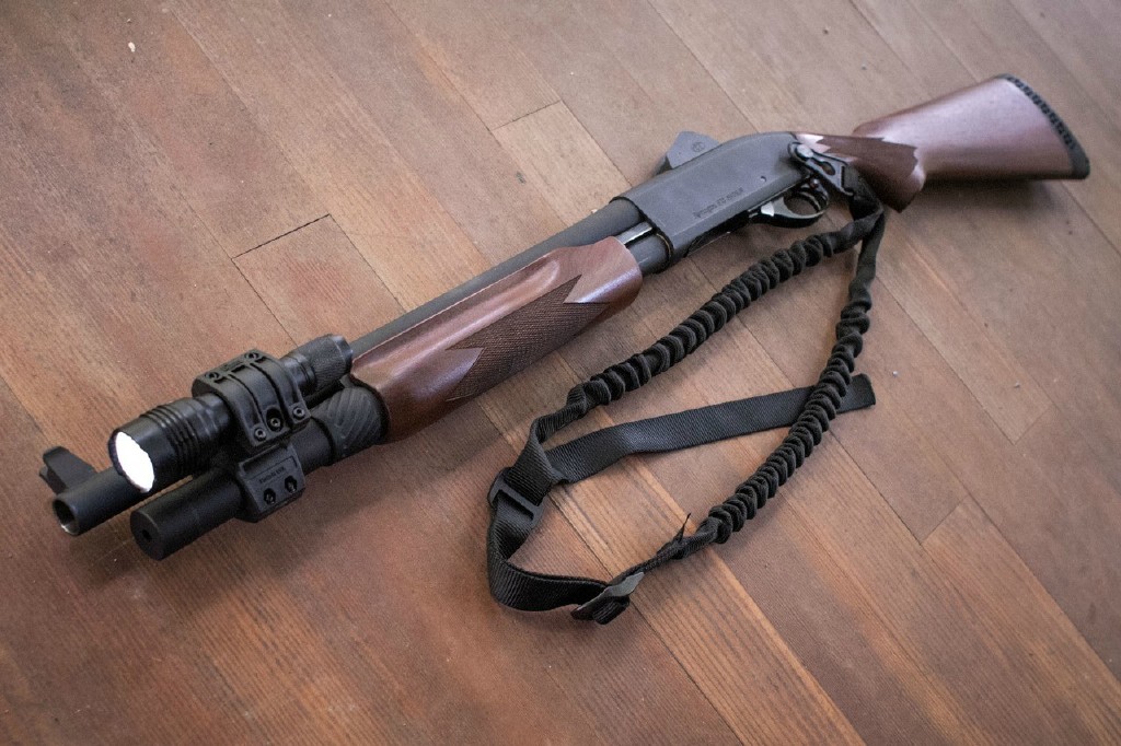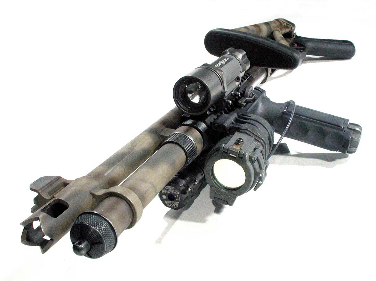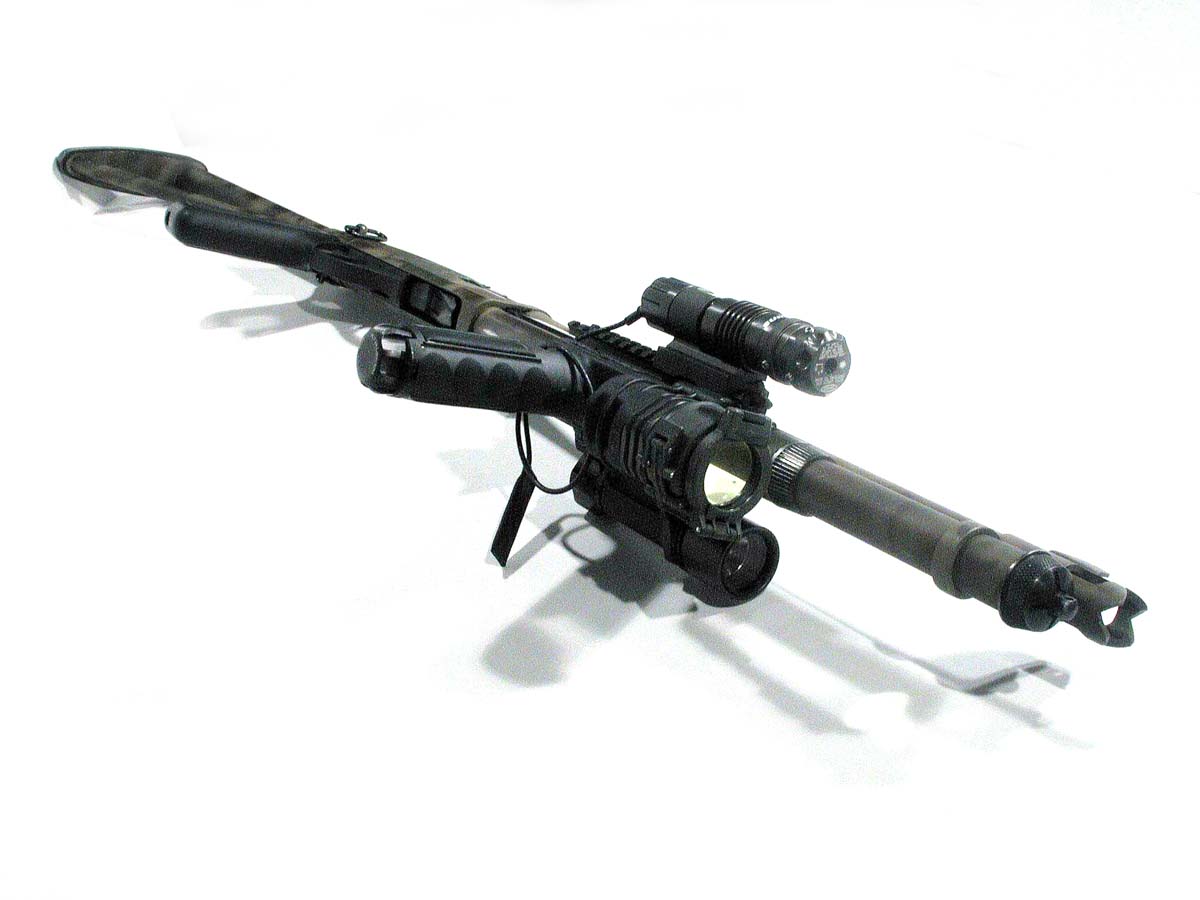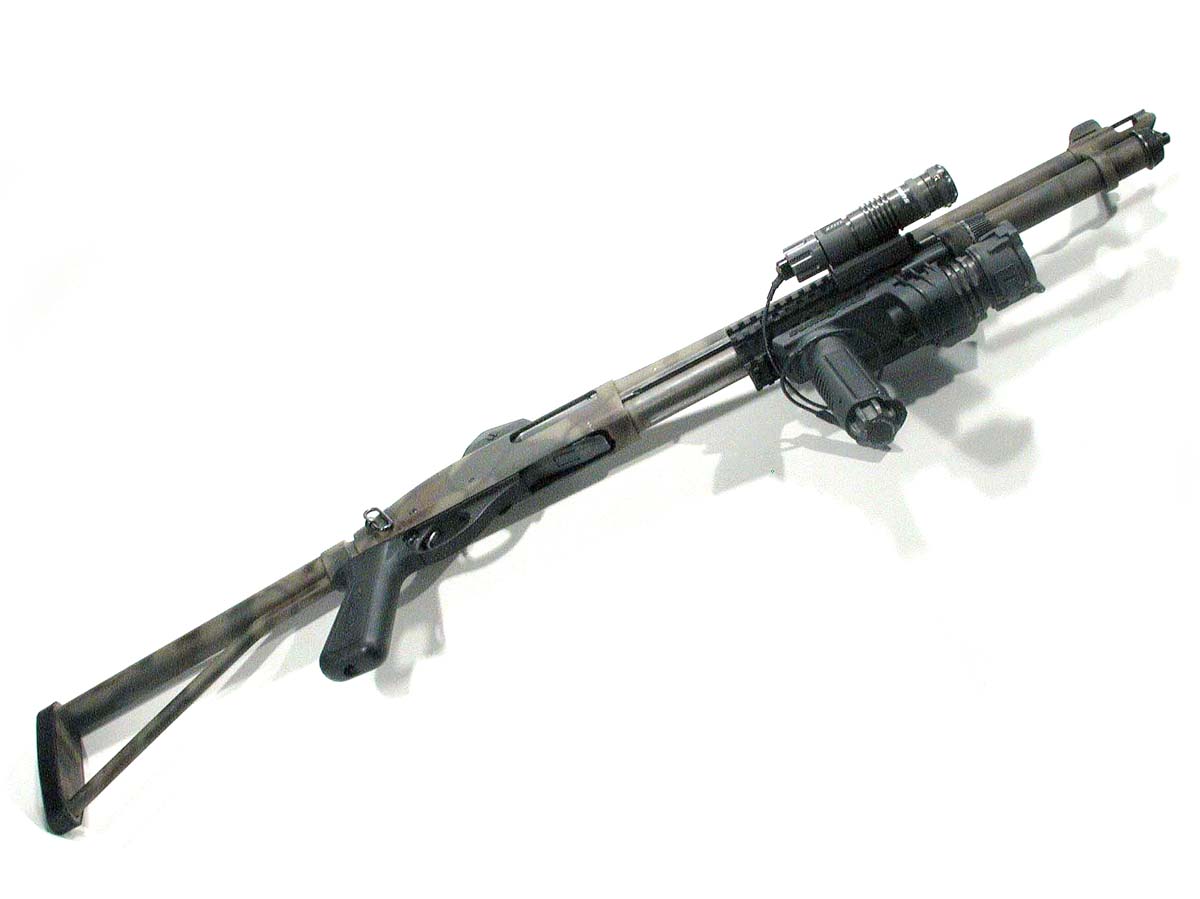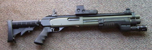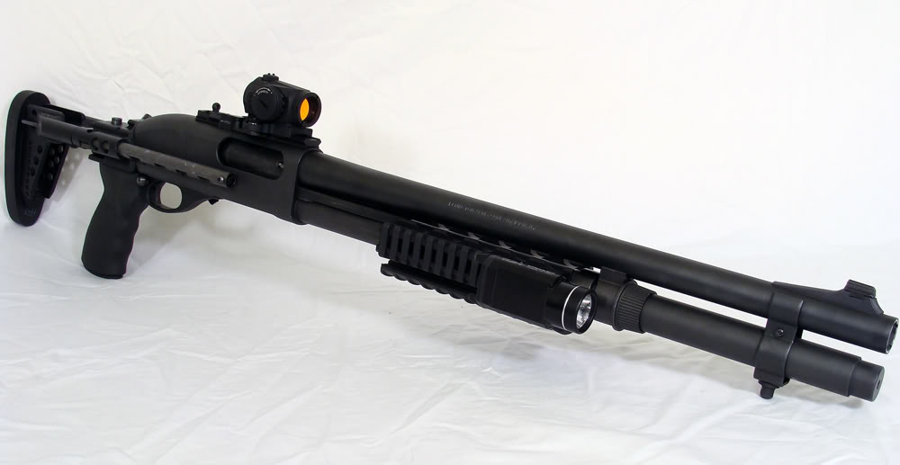 ![]() 战术灯夹在枪管旁边的雷明顿870 |