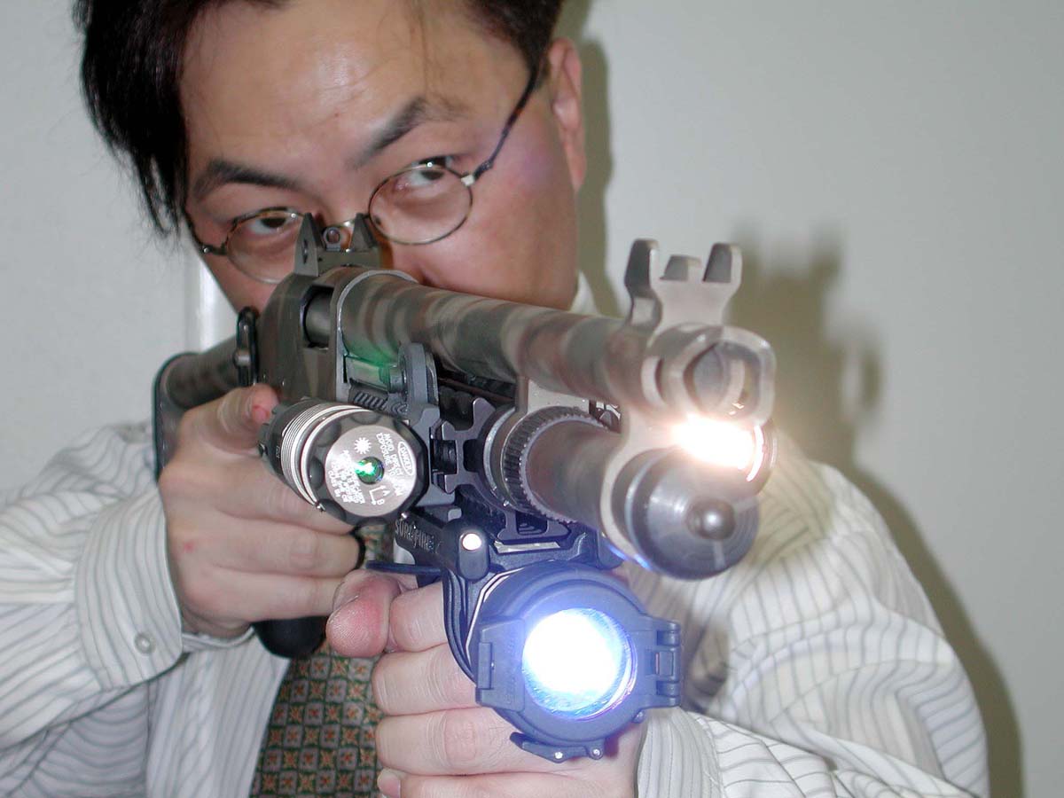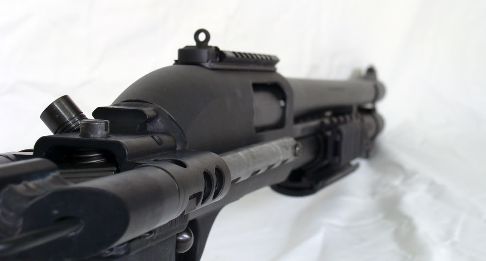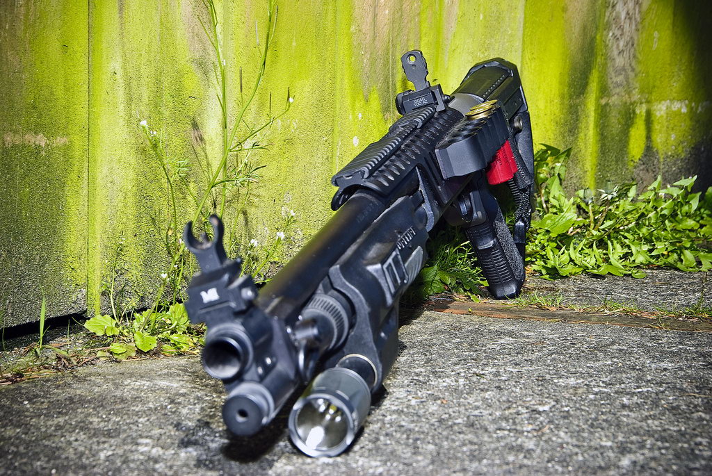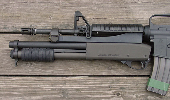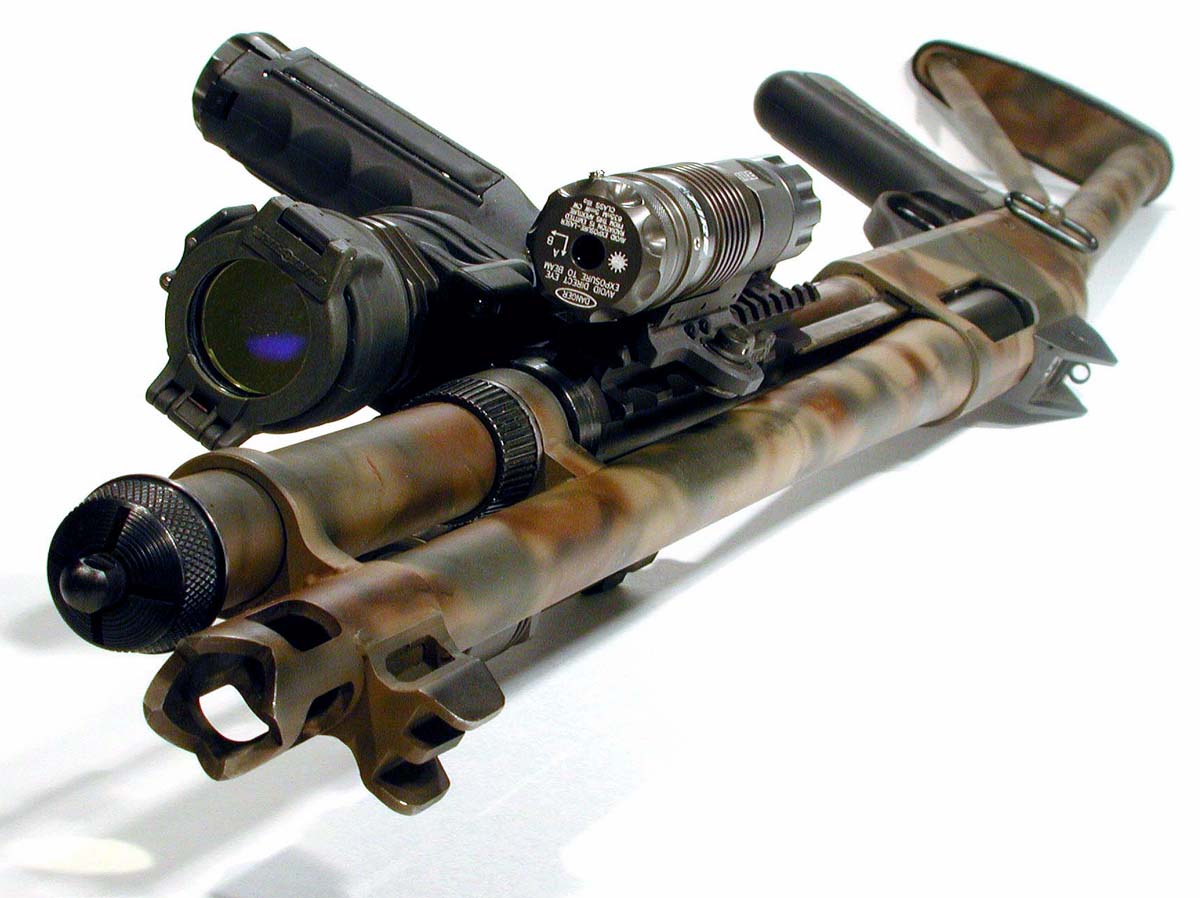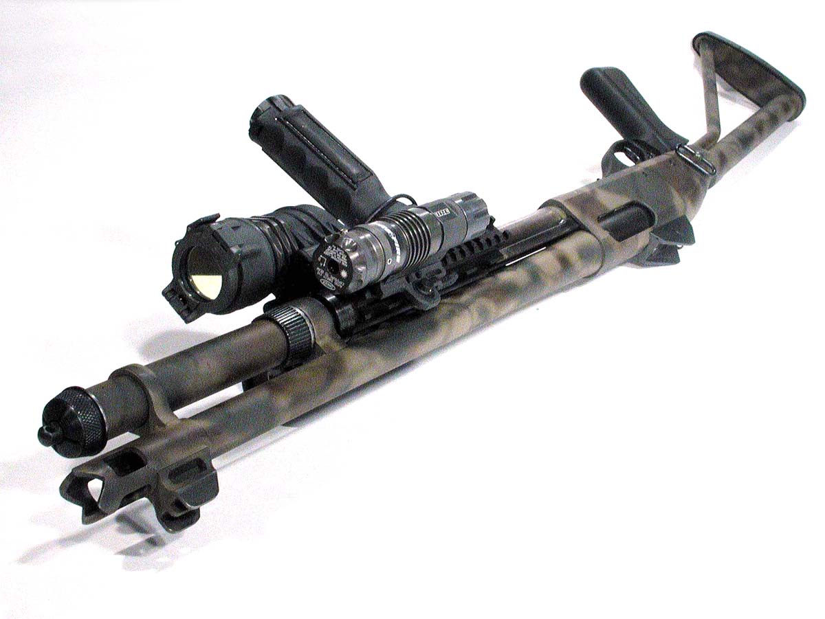 ![]() 战术灯夹在枪管旁边的雷明顿870 |