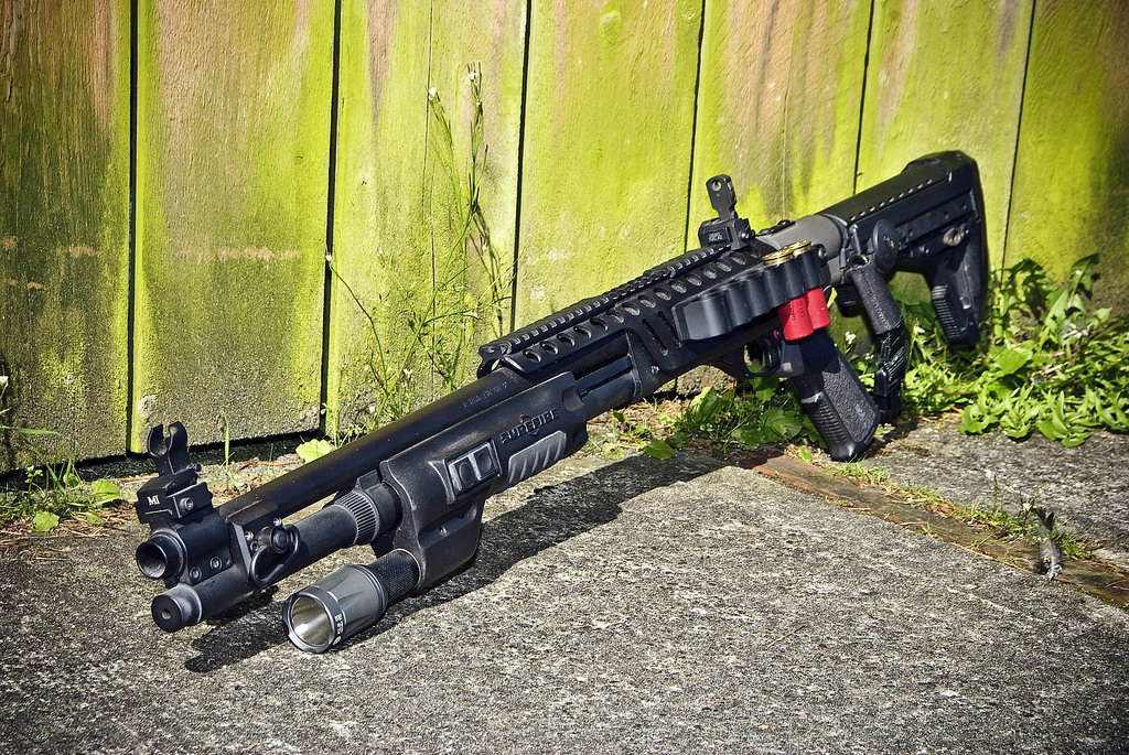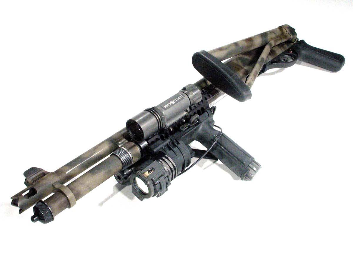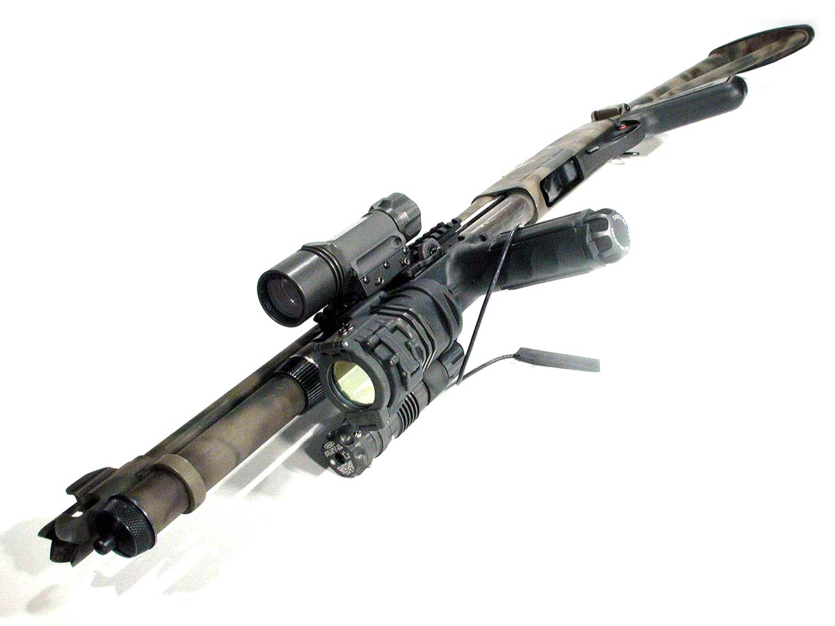 ![]() 使用SureFire战术灯前托的雷明顿870 |
