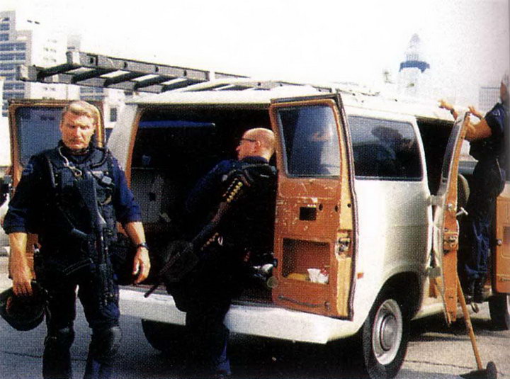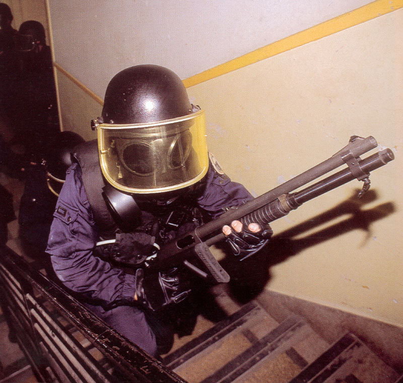 ![]() 芝加哥特警察队HBT,手上是8发型折叠枪托的雷明顿870 |