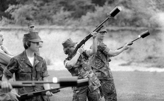 1989年入侵巴拿马的“正义事业行动”中的三角洲队员,其中一人挎着一把短枪管的雷明顿870,但他同时也携带一把柯尔特723型卡宾枪,所以这把霰弹枪应该是用来破锁的