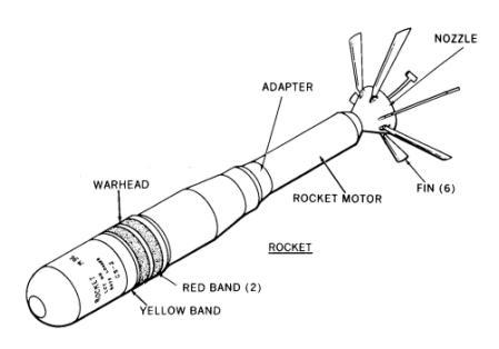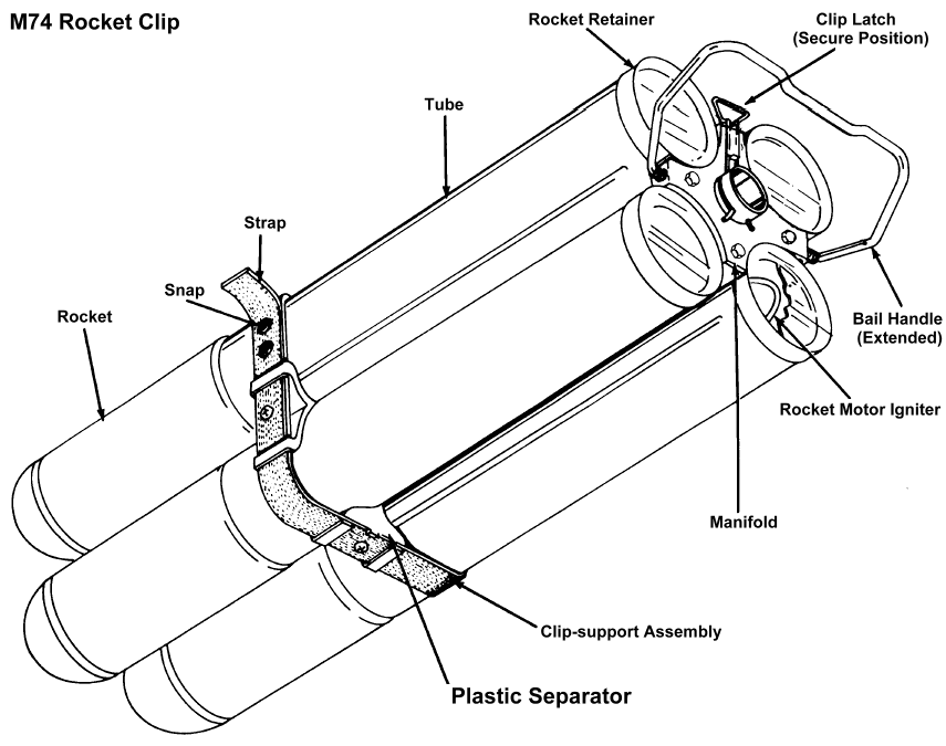 M202A1配用的火箭弹都是基于M54火箭发动机的其他66mm火箭弹,包括M72A1破甲弹、M74燃烧弹、和XM96毒气弹。M74火箭弹由M235战斗部、M434引信、M54火箭发动机和尾翼组成,战斗部装燃烧剂590g,发动机和尾翼组件与M72火箭弹相同。XM96毒气火箭弹除采用M224战斗部外,引信、火箭发动机和尾翼与M74式的基本相同,战斗部装毒剂227g。