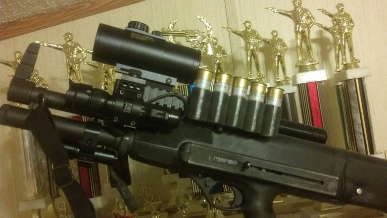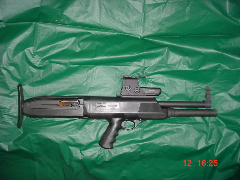 在1940年代,美国许多大城市治安问题严重,多位执法人员被歹徒杀害,因此组织了专门的警察突击队来对付有强大武裝的罪犯,也就是后来的SWAT的前身。在1950年代,加利福尼亚州圣莫尼卡市的一名警官阿尔弗雷德·克劳奇(Alferd Crouch)想到这些警察突击队在冲进歹徒据守的房间时,如果有一种能单手操作的轻巧霰弹枪就更方便了,大概在1957年,他把这个设想附诸于现实,他以一枝雷明登11-48型半自动霰弹枪为基础,改装成一种他称之为“单手发射霰弹的装置”(device for firing the shotgun single handed)的无托式霰弹枪,然后他带着这个“装置”到处去找生产商去推销。