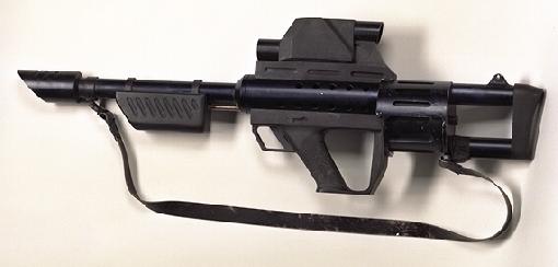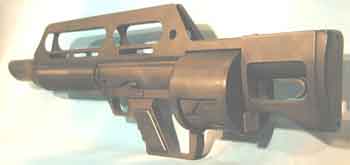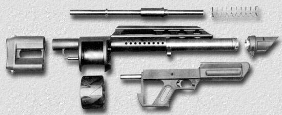 该枪的枪管、消焰器、复进簧和枪机采用高强度钢制成,机匣、发射机构、转轮等其他部件都使用杜邦公司研制的一种叫做Rynite SST的玻璃纤维增强塑料,以减轻重量。简易的机械瞄具藏在提把内。前背带环安装在枪口上,能在很少的范围内前后移动。