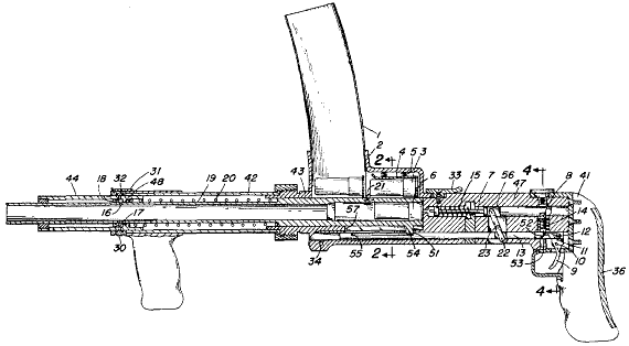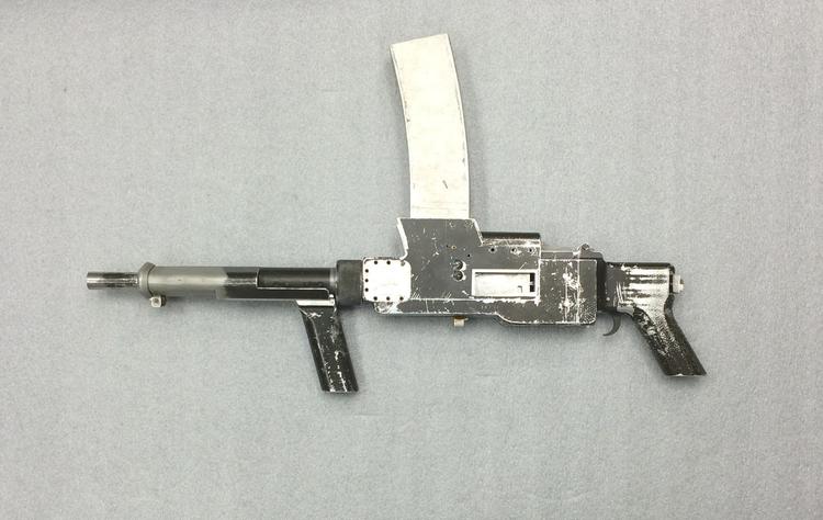 SOW有时也称为MIWS(Multipurpose Individual Weapon System,多功能单兵武器系统)。它的外观很简陋,实际上可能连样枪都称不上,只能算是一个原理样机。考虑到这枪的主要用途是在丛林中向近距离的目标急速地喷洒弹雨,因此该枪没有枪托,只有前后两个握把,外表漆成草绿色。从结构图来看,可能是采用一种枪管长后坐原理,当枪管后座到拉后,弹壳从右侧抛出,新弹从上方进入弹膛。该枪从顶部自上而下用可拆卸弹匣供弹。理论射速为一分钟200发。