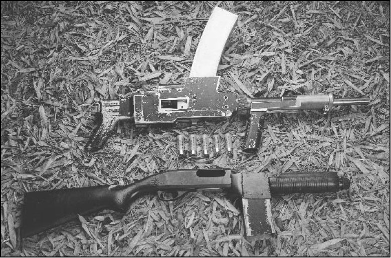 上面SOW全自动霰弹枪,下面是改装成使用弹匣供弹的雷明顿870,这两支枪的弹匣都是卡罗尔·查尔德斯的设计