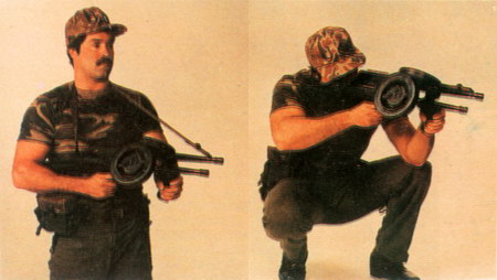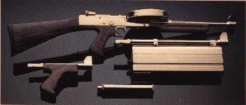 另外,还有一种称为“方块22s”(Quad 22s)的四联装枪架,就是把4支American-180并联起来,各支枪可以单独发射,也可以同时发射。如果使用高压弹同时发射,每分钟可超过6000发的火力,具有惊人的破坏力。但由于太重和体积太大,必须在一个三脚架上并配用一个电子击发机构使用。所以ILARCO的推销员说这种四联装枪架最适合在监狱中作为固定火力,或控制街头暴动。