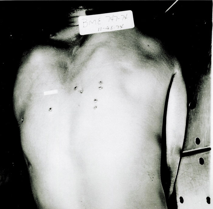 被击毙的嫌疑犯Carlton Johnson的背部枪伤,可以看到创口极小