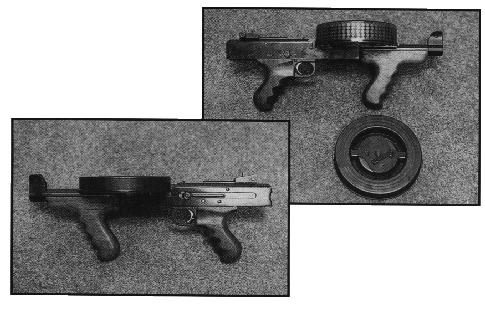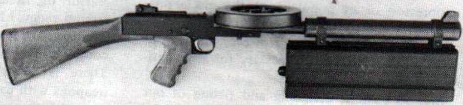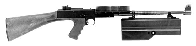 这是一种非常有意思的冲锋枪。由于它发射的是.22LR口径边缘发火弹,因此其威力和射程都极小,但射速却极高。本来希望高射速和高命中率能弥补威力弱的缺点,但这只是设想的人的一厢情愿而矣。