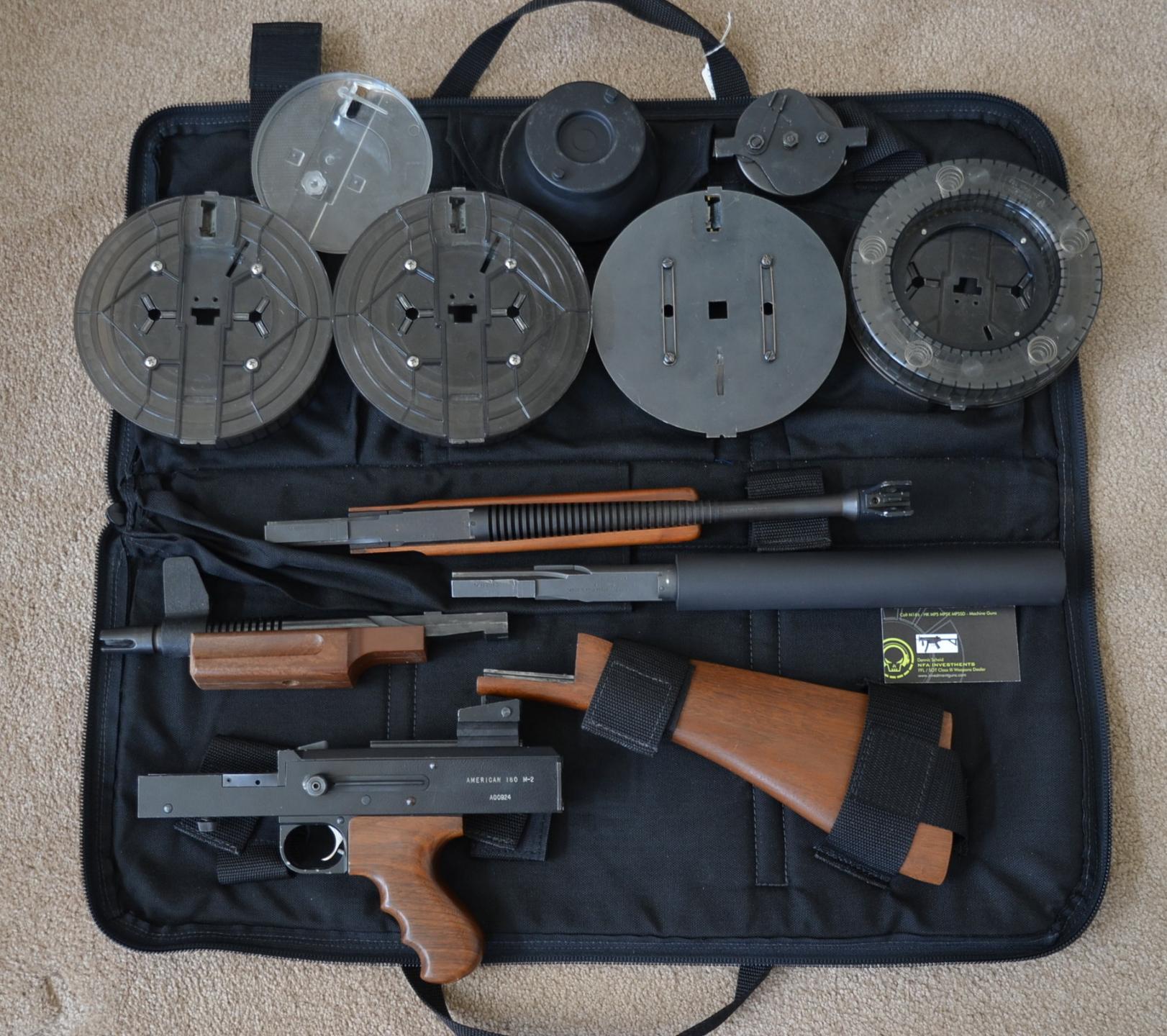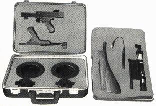 一整套AAI所生产过American-180的,这包括一个木制枪箱,配长护手的标准枪管一根,配Laser Lok的标准枪管一根,和配前握把的短枪管一根。