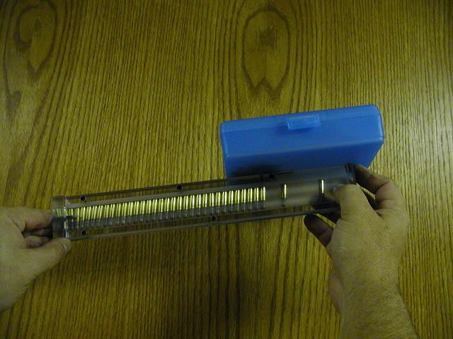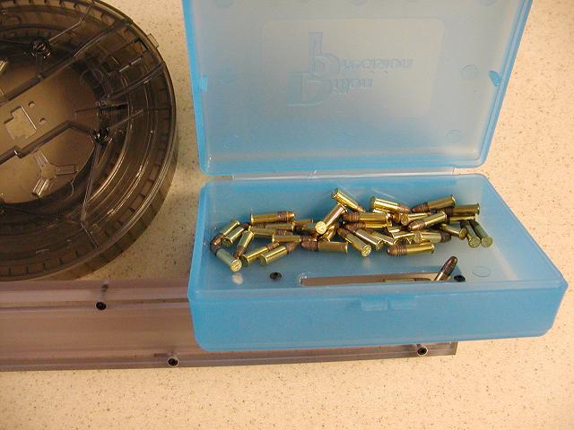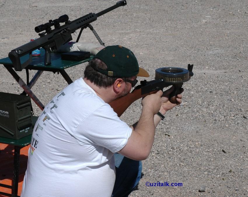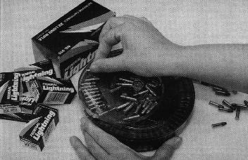 由于容弹量很大,用手装填弹鼓会很费时,约需10~15分钟。现在E&L公司生产了一种输弹槽,熟练的人约需3分钟就能装满一个177发弹鼓。