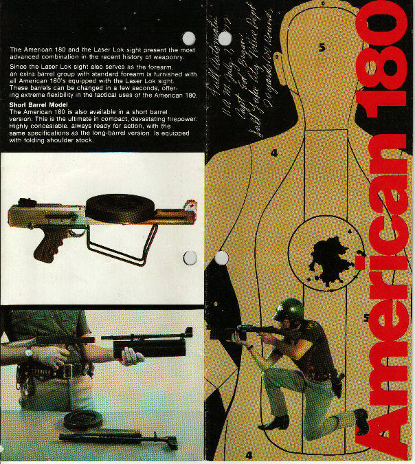 如果需要在隐蔽行动中携带American-180,ILARCO 180武器系统中就包括有一种称为“180 SC”的公文箱枪。外表上看来这只是一个高贵的公文箱,但里面是一把短枪管、没枪托、带激光指示器的American-180,可以不打开公文箱就直接对准目标射击。