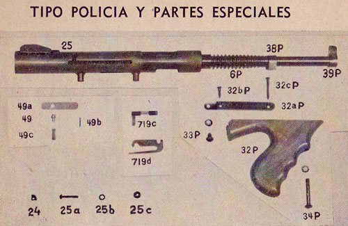 警用型M6的外形与汤姆森冲锋枪相近,大多数为.38 Super口径,枪管下有前握把,枪管表面有散热槽,片状准星完全裸露没有保护。