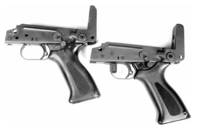 ![]() 左边是斯通纳63的扳机座及握把,右边是斯通纳63A的 |