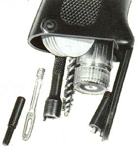 取下发射机座和枪托,取出复进簧;