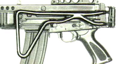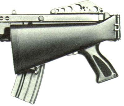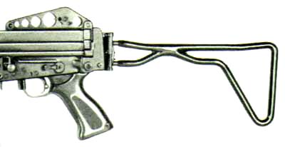 与MP40或AKS47相似的下翻式折叠枪托,是荷兰NWM公司试验过的产物