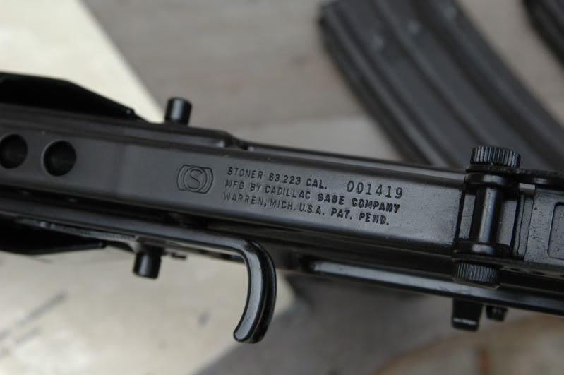 ![]() 斯通纳63A型卡宾枪的拉机柄位于导气管上方,如果是机枪型则在下方 |